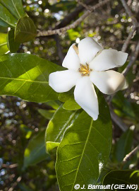 Le tiaré des forêts sèches doit son nom commun à ses petites fleurs blanches odorantes qui rappellent la fleur de tiaré (Gardenia tahitensis) bien connue dans la région Pacifique. Petit arbuste endémique pionnier, très répandu en forêt sèche mais également présent dans le maquis, l’espèce Gardenia urvillei est souvent utilisée pour le reboisement de la forêt sèche.
