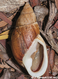 Le bulime se rencontre sur la côte Ouest de la Grande Terre. Sa croissance est très lente et il vit environ 25 ans. La modification de l'habitat, l'introduction d'espèces exotiques envahissantes (cochons, cerfs, achatines) et, dans une moindre mesure, la surexploitation de la ressource constituent les principales menaces qui mettent en danger les populations de bulimes des forêts sèches.