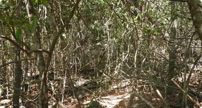 Lorsque l’on pénètre dans une forêt sèche, dans l’entremêla de lianes, on rencontre sans difficulté les espèces représentatives du milieu. On aura toutefois davantage de peine à observer certaines plantes endémiques et rares, dont une partie, micro-endémique, ne subsiste plus que sur une seule localité du territoire, en raison de l’extrême fragmentation de leur habitat.